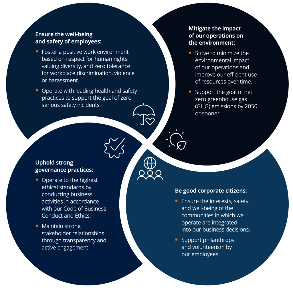 Our experience has demonstrated that there is a strong correlation between acting responsibly, aligning with the interests of our investors, employees, and other stakeholders, and creating sustainable value.